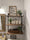 Spacious work areaTwo lower shelves for storageFinished on all sides for versatile placementDurable, black metal frameCharter Oak finish
