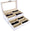About this item Product Dimensions (L x W x H): 13.4" x 7.6" x 6" (34 x 19 x 15 cm) Metal Lock,Black High Grade PU Leather surface,Two levels,12 separate compartments to keep your sunglasses and glasses organized Clear glass...
