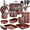 Cookware set includes: 4” mini frying pan, 7” and 9.5” frying pans, 1 quart and 2 quart saucepans with lids, 5 quart stock pot with lid, 2.5 quart saute pan with lid, 7” stainless steel steamer, and 4 kitchen utensils...