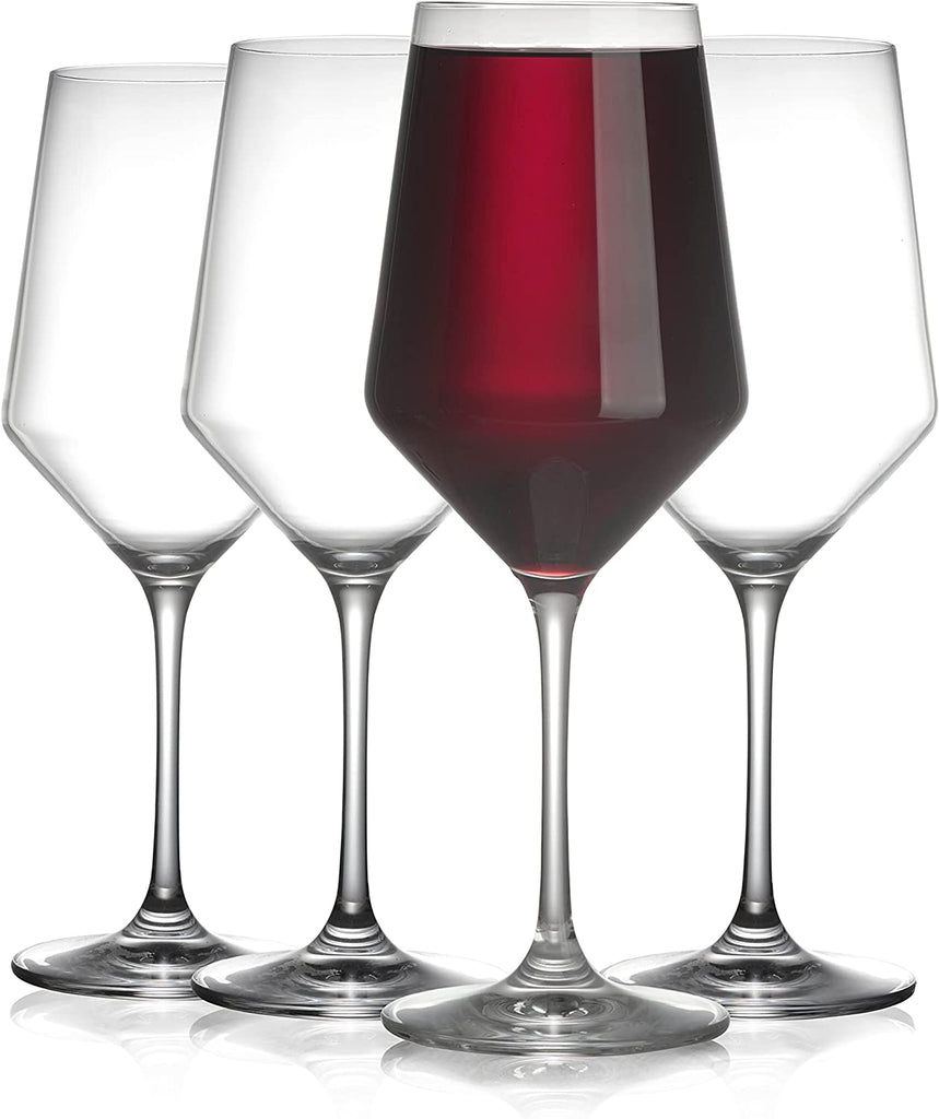 - 🍷BEAUTIFULLY SOUNDING, ULTRA CLEAR CRYSTAL WINE GLASSES: The perfect wine glass should function, look, feel, and sound amazing. We've spent plenty of time ensuring that all these qualities are present in our wine glasses. Our beautiful and elegant wine glasses are sure to elevate any get-together from the way they look to the way they function. Our wine glasses are designed and crafted with functionality as a priority.